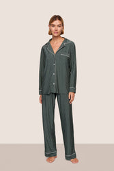 -  Eberjey Gisele Printed Long PJ Set - Duo Stripe Pine/Ivory