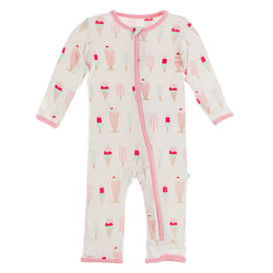 - Kickee Pants Print Coverall with Zipper - Natural Ice Cream Shop