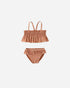 This bikini set is a must-have for summer! Featuring a smocked top with spaghetti straps, and ruffle bottoms.
