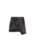 Edgy stonewash denim mini asymmetrical skirt with faux opening detail on the front and functioning side zipper. Features belt loops, two side pockets and two back pockets. Skirt falls above the knee. Made from 50% Cotton 25% Organic Cotton 25% Recycled Cotton.