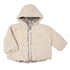 Two in one coat with one faux fur side with floral embroidery and a reverse floral printed side. Faux fur side features two small pockets and trim along the sides of the zipper with the same floral fabric. We love that this piece allows you create different looks for your little one without buying more clothing.