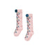 Blush colored socks with beautiful knit design and contrast pom detail.