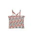 Gorgeous floral cropped top. Features delicate embroidery, ruffle trimmed neckline, smocked bodice and cross back straps.  Pair with the matching shorts for a beautiful set.