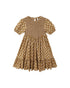 Our smocked Lydia Dress features a gathered V-waistline, balloon sleeves, and a tiered, gathered skirt.