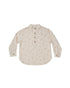 Mason shirt with a mandarin collar and chest pocket. Coconut buttons along front placket. Featuring our ‘flight’ all-over print on natural.