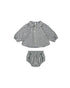 Sweet checked Nellie Set includes a long sleeve button-down shirt with a darling Peter Pan collar and matching bloomers. Pair with the matching bow or headband for a coordinated look>