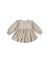 Adorable long sleeve top. Features empire waist, ruffles along the shoulders, button loop closure at back, and a tiny floral print all over. Made from 100% Cotton. Pair with the button short for a perfect set