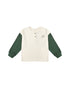 Relaxed fit long sleeve tee with contrast dark green sleeves.  Features a button placket at the center front, winged feet with the words "RC 2014" on the left chest and cool graphic across the back.