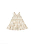 Pretty cotton sundress in natural with almond stripes. Features wooden buttons at the front and full tiered skirt.