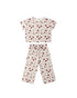 A cute and comfy lounge set that includes a soft short sleeve top and cozy wide leg pants. The top features a relaxed fit, and the pants have an elasticized waistband.