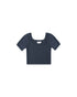 Wardrobe staple cropped-fit Scalloped Tee is a versatile fall staple, crafted from delicate pointelle knit fabric and detailed with scalloped sleeves and neckline.