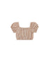 Gorgeous square neck cropped woven top. Features a mock button front, puff sleeves and elastic bottom hem.