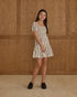 The Emily Dress is an easy, feminine silhouette featuring a smocked bodice, puff sleeves, and a tiered skirt. Designed in a natural base with green vine print, it’s both playful and timeless—perfect for everyday wear or special outings.