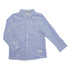 Dressed up cozy soft textured cotton button down in a neutral blue color. Features a button front, classic collar, three small embroidered x design detail on left wrist and small pocket on left chest. Made from 100% cotton.