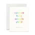 Simple and chic rainbow baby card with text "rainbow baby miracle child" and "so happy for you."