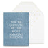 Our Most Amazing Parents card is letterpress printed by hand on antique machinery. White foil on chambray paper, paired with a white envelope and gold foil dot liner. Folded card, blank inside.