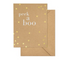 Cute kraft colored card with gold stars design and white text "peek a boo" on the front. Blank inside.