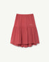 Tiered skirt in soft, flowy fabric. Muted red color with white TAO logo at front left.