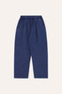 Comfy lounge fit pant in a denim wash. Features elasticized waistband, side pockets and two back pockets. Back right pocket has an embroidered white logo on it.