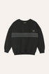 Cozy washed gray sweatshirt. Features crew neck, ribbed wrist cuffs and hem, gray stripes across the front and a gray Campamento logo on the left chest.