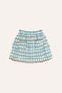 Pretty floral skirt. Features elasticized waistband, scalloped edge detail on hem and pockets in contrasting orange, two front pockets and allover floral print with stripes. Pair with the matching top for a cute outfit.