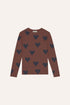 Soft brown long sleeve tee. Features rounded neckline and allover heart print.