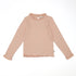Pretty long sleeve top in a flat rib with a rounded neck and lace trimmed edges. Features a keyhole opening at back of neck with button closure. Pair with the matching leggings for a comfy lounge set.