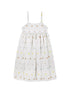 Rich weave texture dress in a beautiful heathered natural color with all over subtle multicolor floral print. Features thin straps, empire waist and full skirt. 100% organic cotton. Made in Portugal.