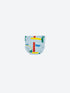 Light blue cotton bloomer with abstract beacons multicolor print.