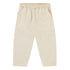 Cream, lightweight trousers. They are in a loose fit and have an elastic waist with a drawstring for a secure, comfortable fit. They are lightweight and airy, and they have a small smiling face embroidery on the pocket. Pair with matching shirt for a perfect set>