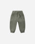 Super soft micro corduroy pants. Features an elastic waistband and leg openings, adjustable drawstring, decorative button fly and pockets on the sides.