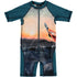 Deep teal one piece with cool sunset point break graphic. Featuring front zip and contrast stitching. Molo swimwear has a 50+ UV protection.