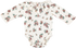 Your little one will look and feel delighted in this gorgeous long sleeve ribbed bodysuit . Features beautiful flower print all over on an off-white ribbed fabric, round neckline with ruffle trim around it and snap button closure at back and inseam for easy dressing. Made in Spain from 100% Organic Cotton.
