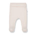 Soft ribbed footed pants top in a neutral sand color. Features a foldover waist. Made from 48% cotton, 47% Modal and 5% elastane for stretchy comfort. Made in Spain.