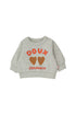 Soft heather grey sweatshirt with cute heart cookies graphic and text doux chamonix.