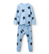 Cool lounge set in Nununu's signature star print. Long sleeve top has a crew cut neckline. Bottom features a slight drop crotch, elasticized waist and ankle cuffs. Made of 100% cotton with slight stretch for a comfortable fit. Foggy Blue color with black all over stars.