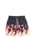 Cool black to ombre with lightning bolt print board shorts. Made of 100% recycled polyester.