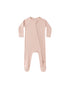Full zip footie in a soft and stretchy bamboo fabric in a pretty pink. Double zipper allows for easy changing.
