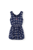 Playful navy tank dress with an all over anchors print. Features a rounded neck and cinched waist.