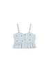 Chic light blue tank top sprinkled with playful red dots.Features a soft ruffle hem, button front and an airy fit.