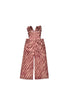 Animal printed overall with delicate embroidered details. Features wide leg and cross back straps.