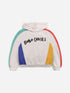 Natural colored hoodie with color blocked design and black text "Bobo Choses" on the front.