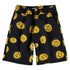 The happiest shorts we have ever seen! Woven cotton black shorts with all over print of yellow grafitti smiley faces. Features an elasticized waist, two front pockets and one back pocket.