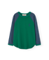 An iconic look from The Animals Observatory, a baseball-like kids T-shirt with blue raglan sleeves.
