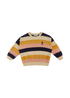 Unisex striped knit jumper with small navy logo embroidery at left chest.