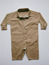 Cool one piece in a camel shade features a collar, two pockets in the front and back and coconut buttons on the cuffs and down the front. An easy one piece for a cool look that is easy to adventure and play in. Made form 100% woven cotton and individually dyed adding a uniqueness to each piece. Made in Portugal.