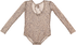Go wild with this delightful long sleeve tulle bodysuit. Features round neckline with open back and tie strings closure, snap button closure at crotch, tiny Tocoto signature star appliqué at chest. Made in Spain from 100% Cotton.