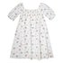 Off white dress with sweet multicolor floral print all over. Features smocked chest and pretty puff sleeves.