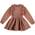 Beautiful dusty rose dress with lace trim. Features gathered waist and keyhole opening at back.