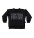 Black sweatshirt featuring shiny black text "control freak" across front.
